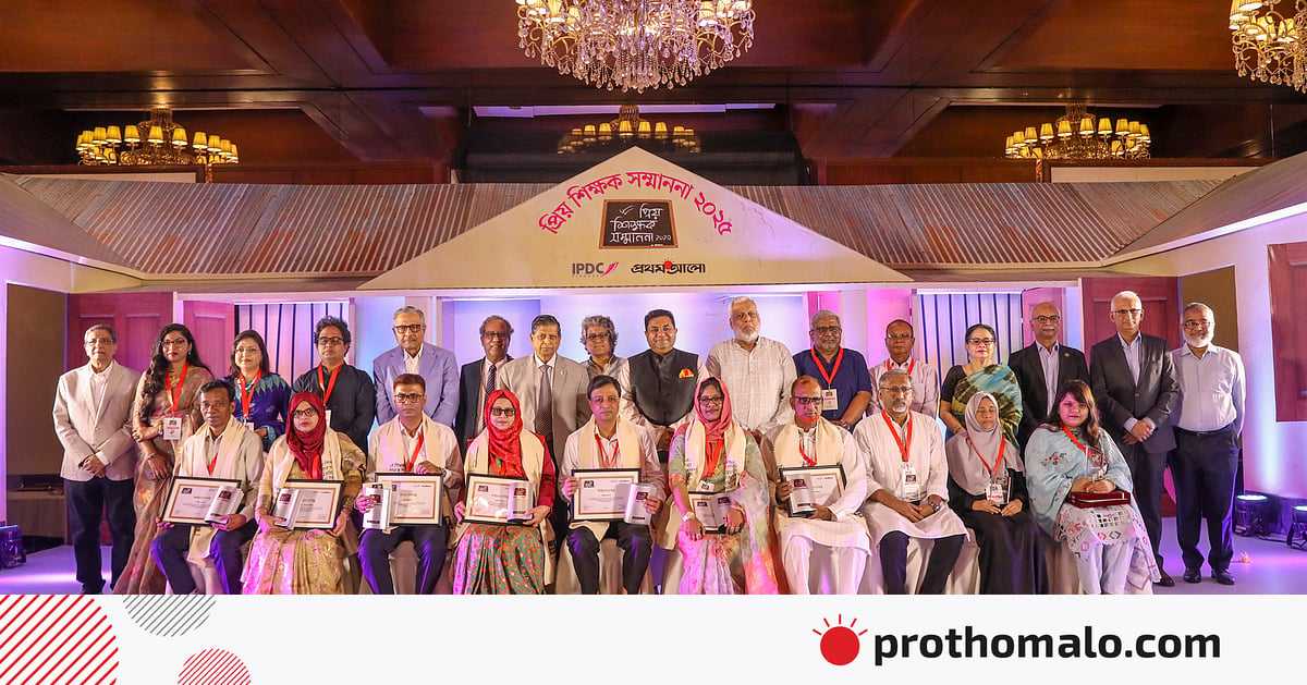 ‘আইপিডিসি-প্রথম আলো প্রিয় শিক্ষক সম্মাননা ২০২৫’ অনুষ্ঠানে এমনই এক পরিবেশ সৃষ্টি করা হয়েছিল। যা কিছুক্ষণের জন্য ছোটবেলার স্কুলের কথাই মনে করিয়ে দিল উপস্থিত সবাইকে। বিশ্ব শিক্ষক দিবসের আগের দিন আজ শনিবার রাজধানীর প্যান প্যাসিফিক সোনারগাঁও হোটেলে আয়োজিত এ অনুষ্ঠানে দেশের নানা প্রান্তে ছড়িয়ে থাকা মানুষ গড়ার কারিগর সাতজন প্রিয় শিক্ষককে সম্মাননা দেওয়া হয়। এ ছাড়া রাজধানীর উত্তরায় মাইলস্টোন স্কুল অ্যান্ড কলেজে বিমান বিধ্বস্তের ঘটনায় নিহত তিন শিক্ষককে দেওয়া হয় মরণোত্তর সম্মাননা।