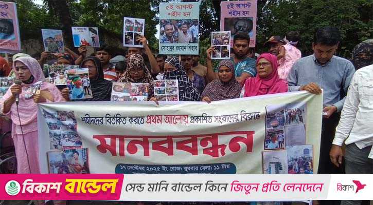 মানববন্ধনে উপস্থিত ছিলেন বৈষম্যবিরোধী ছাত্র আন্দোলন যশোরের সাবেক আহ্বায়ক রাশেদ খান, শহীদ ইউসুফ আলীর মা শাহীনা খাতুন, শহীদ সোহানুর রহমান সোহানের বাবা আনোয়ার হোসেন লাল্টুসহ নিহতদের পরিবারের অন্যান্য সদস্য ও স্থানীয় নাগরিকরা।