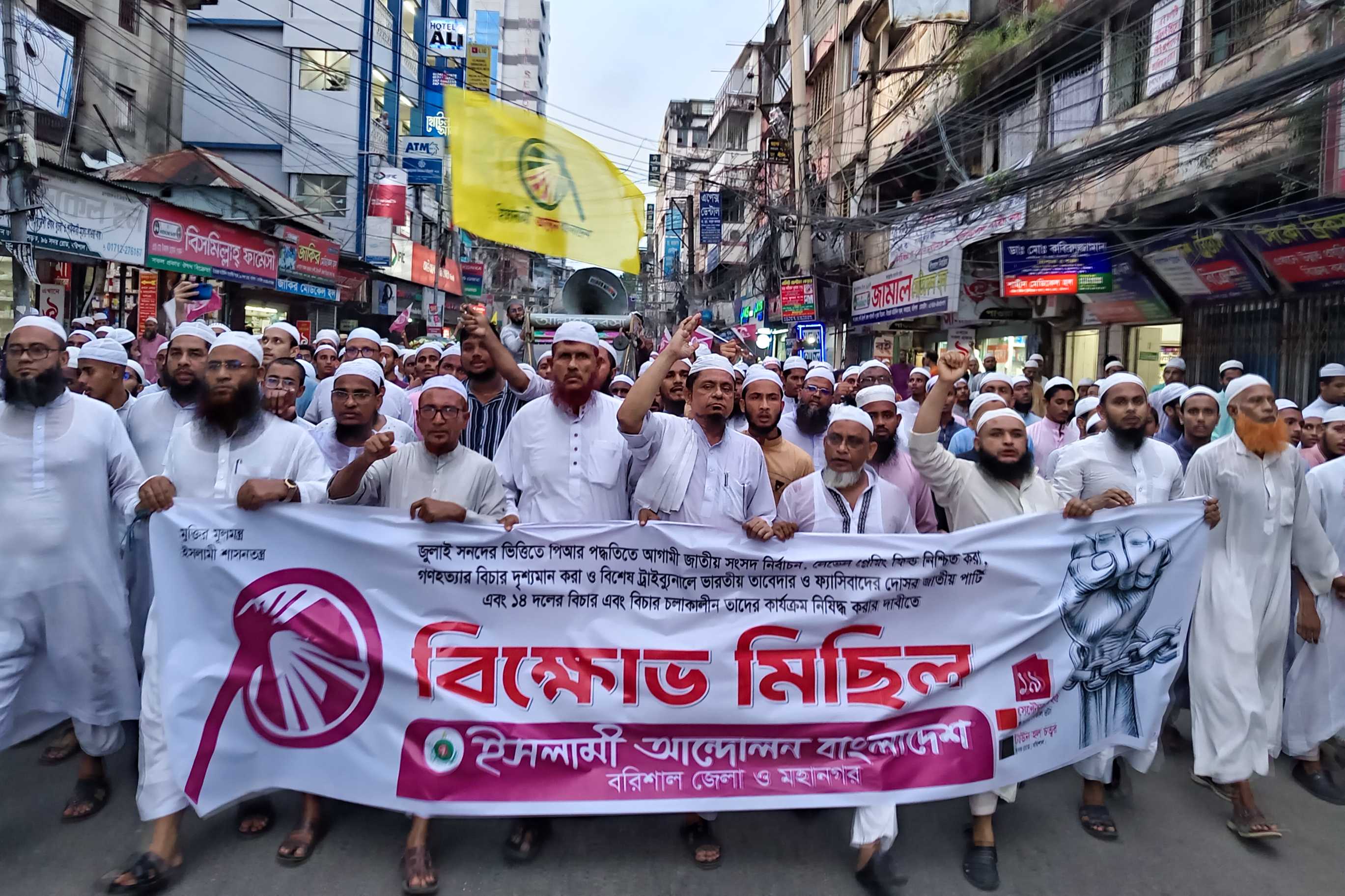 ইসলামী আন্দোলনের বরিশাল নগর সভাপতি অধ্যাপক মো. লোকমান হাকীমের সভাপতিত্বে অনুষ্ঠিত বিক্ষোভ মিছিলে সঞ্চালনা করেন নগর সেক্রেটারি মাওলানা আবুল খায়ের এবং জেলা সেক্রেটারি মাওলানা হাফিজুর রহমান।