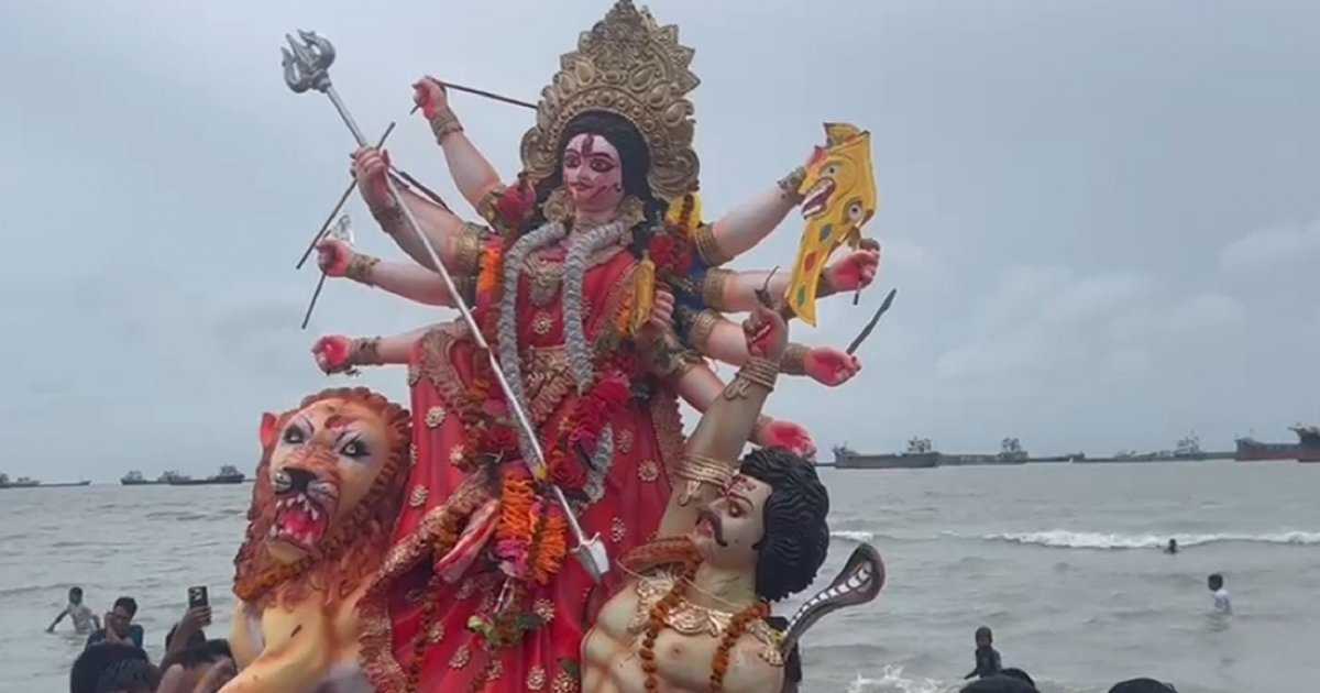 এদিকে, তেল-সিঁদুর পরিয়ে, পান, মিষ্টি মুখে দিয়ে দেবী দুর্গাকে বিদায় জানাতে পতেঙ্গা সমুদ্রসৈকতে ভিড় করেছেন ভক্ত-অনুরাগীরা।