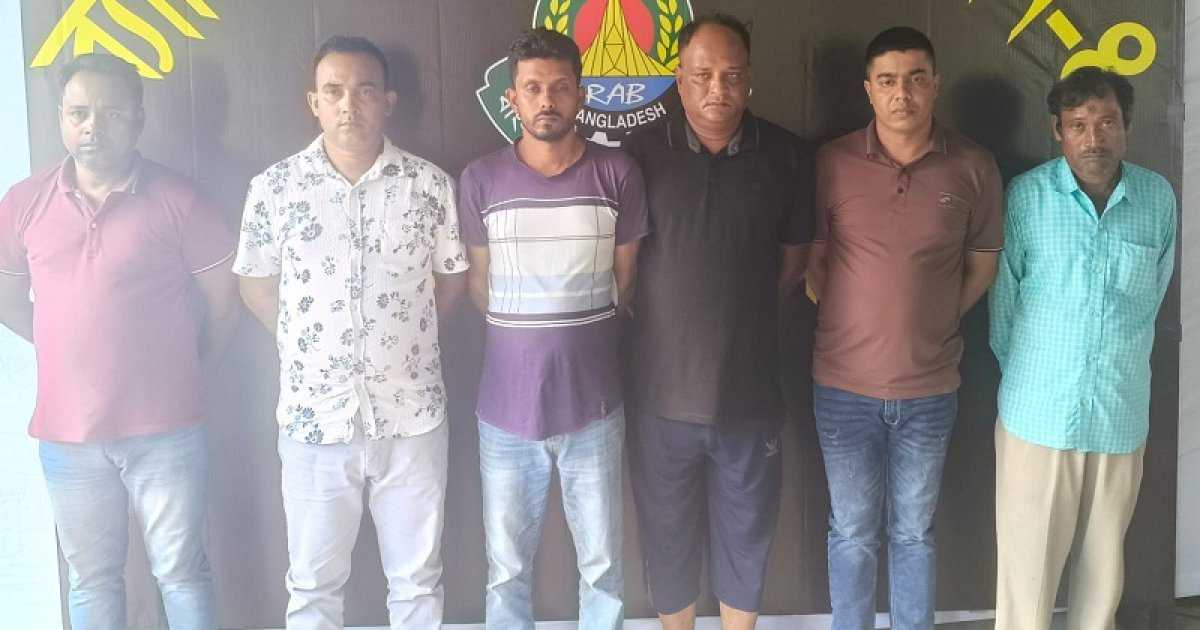 গ্রেফতার ছয়জন হলেন- সোহেল রানা ওরফে মিলন (৩৩), তৈয়ব ওরফে মোস্তাক (৪৬), মো. সজীব মুন্সি (৪৪), শামীম আহমেদ (৪৫), মো. মওলাদ আলী খান (৫২) এবং সোহেল রানা ওরফে জিন্নাহ (৩৭)।