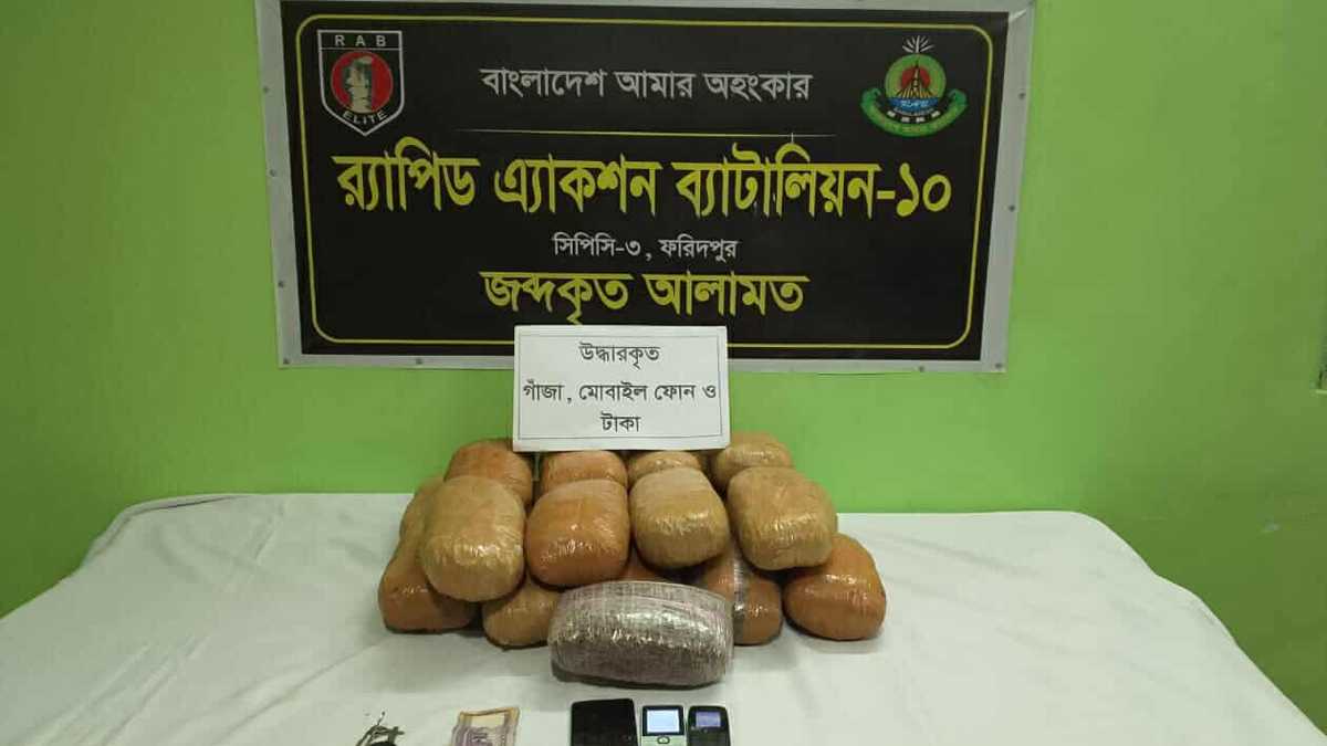 ফরিদপুর র্যাব-১০ এর সিনিয়র সহকারী পুলিশ সুপার ও সহকারী পরিচালক (মিডিয়া) তাপস কর্মকার জানান, শুক্রবার দিবাগত রাত দুইটার পর র্যাব-১০ ফরিদপুর ক্যাম্পের একটি আভিযানিক দল গোপন সংবাদের ভিত্তিতে রাজবাড়ী কালুখালীর বোয়ালিয়া ইউনিয়নের সোনাপুর মোড় সংলগ্ন ভাবীর হোটেলের সামনে রাজবাড়ী টু কুষ্টিয়া আঞ্চলিক মহাসড়কে চেকপোস্ট স্থাপন করে তল্লাশী কার্যক্রম পরিচালনা করে। এ সময় তল্লাশি চালিয়ে মেহেরপুর থেকে আসা একটি মাইক্রোবাস হতে আনুমানিক পাঁচ লক্ষ ৭০ হাজার টাকা মূল্যের ১৯ কেজি গাঁজাসহ ২ জন মাদক ব্যবসায়ীকে গ্রেফতার ও মাইক্রোবাসটি জব্দ করা হয়।