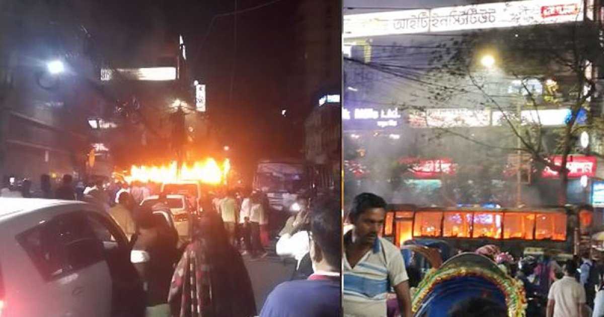 ৩ বাসে আগুন