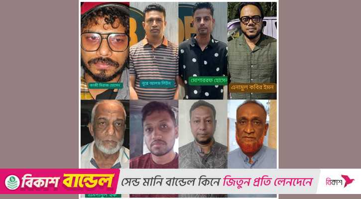 গ্রেপ্তাররা হলেন—সুনামগঞ্জ জেলা আওয়ামী লীগের সহসভাপতি ও কেন্দ্রীয় কমিটির সদস্য মো. এনামুল কবীর ইমন (৫১), ঢাকা মহানগর দক্ষিণ যুবলীগের দপ্তর সম্পাদক এমদাদুল হক (৫৫), বনানী থানা তাঁতী লীগের সহসভাপতি মো. মোশাররফ হোসেন (৩৮), ঢাকা মহানগর দক্ষিণ ছাত্রলীগের যুগ্ম সাধারণ সম্পাদক কাজী মিরাজ হোসেন মনি (৩০), সাম্প্রতিক সময়ে ঝটিকা মিছিলে অংশগ্রহণকারী বেলাল আহমেদ নাহিয়ান ওরফে বিপ্লব (৩২), জয়পুরহাট সদর উপজেলার আমদই ইউনিয়ন চেয়ারম্যান ও ইউনিয়ন আওয়ামী লীগের সভাপতি মো. শাহানুর আলম সাবু (৫৩), মতিঝিল থানা ৯ নম্বর ওয়ার্ড দৈনিক বাংলা ডিডিএস ইউনিট যুবলীগের সাংগঠনিক সম্পাদক মো. নূরে আলম লিটন হোসেন (৩৭) ও চকবাজার থানা ৩০ নম্বর ওয়ার্ড আওয়ামী লীগের সহসভাপতি আমিনুল হক মুরাদ (৪৫)।
