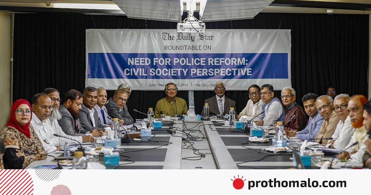 ‘পুলিশ সংস্কারের প্রয়োজনীয়তা: নাগরিক সমাজের দৃষ্টিভঙ্গি’ শীর্ষক গোলটেবিল বৈঠকে বিশিষ্টজনদের আলোচনায় রাজনৈতিক প্রভাবমুক্ত পুলিশ গঠনের প্রয়োজনীয়তার বিষয়টি বারবার উঠে এসেছে। ইংরেজি দৈনিক দ্য ডেইলি স্টার আয়োজিত এই বৈঠকে আলোচকদের মধ্যে রাজনীতিবিদদের পাশাপাশি পুলিশের বর্তমান ও সাবেক আইজিপি, অবসরপ্রাপ্ত বিচারপতি, আইনজীবীসহ নাগরিক সমাজের প্রতিনিধিরা ছিলেন। গতকাল শনিবার বিকেলে রাজধানীর দ্য ডেইলি স্টার সেন্টারে এই বৈঠক অনুষ্ঠিত হয়।