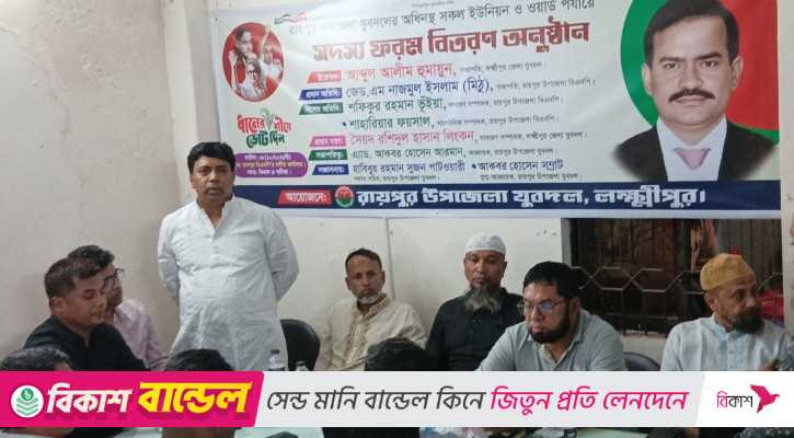 রায়পুর উপজেলা যুবদলের আহ্বায়ক অ্যাডভোকেট আকবর হোসেন আরমানের সভাপতিত্বে ফরম বিতরণ কার্যক্রম উদ্বোধন করেন জেলা যুবদলের সভাপতি আব্দুল আলিম হুমায়ুন।