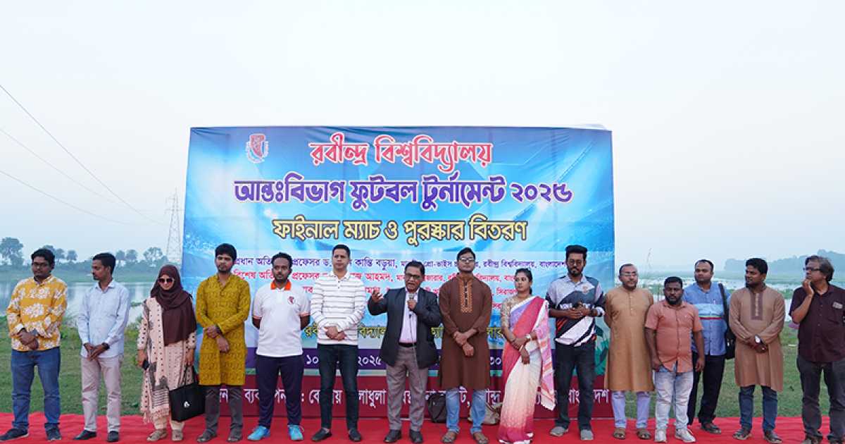 উল্লেখ্য, রবীন্দ্র বিশ্ববিদ্যালয়ের মাননীয় ভাইস-চ্যান্সেলর প্রফেসর ড. এস. এম. হাসান তালুকদারের সার্বিক দিকনির্দেশনায় আয়োজিত এই আন্তঃবিভাগ ফুটবল টুর্নামেন্টে বিশ্ববিদ্যালয়ের ৫টি বিভাগের শিক্ষার্থীরা আলাদাভাবে ৫টি টিমে খেলায় অংশগ্রহণ করে।
