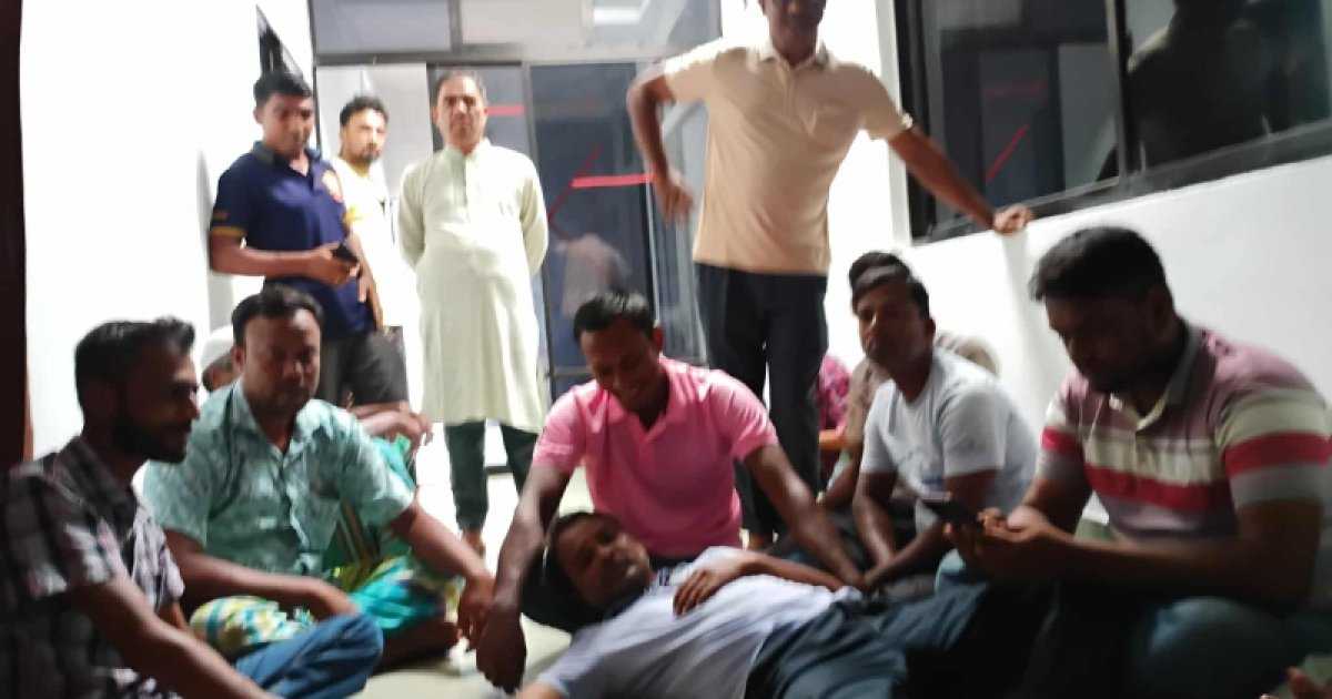সোমবার সকাল ৯টা থেকে বাড়িতে অবস্থান নিয়ে অনশন শুরু করেন শতাধিক চাকরিপ্রত্যাশী। দুপুর ১২টার দিকে নুর মোহাম্মদ মন্ডলের বাসা থেকে জানানো হয়, তিনি বাসায় নেই। এ ঘটনায় বিক্ষুব্ধ হয়ে ওঠেন প্রতারিতরা। এ সময় টাকা না দিলে বাড়ির সামনেই বিষপান করে আত্মহত্যা করার হুমকি দেন। অনেকেই সঙ্গে বিষ নিয়েও আসে। এক পর্যায়ে অনশনকারীরা বিক্ষুব্ধ হয়ে ওঠেন। তারা বিভিন্ন স্লোগান দিতে থাকেন। অনেকেই বাসার সামনে শুয়ে পড়ে টাকা ফেরতের দাবিতে হাউমাউ করে কাঁদতে থাকেন।