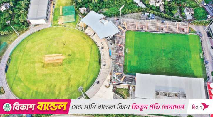 বসুন্ধরা স্পোর্টস সিটিতে ক্রিকেট মাঠের পরেই ফুটবল স্টেডিয়াম, এরপর দুটি সুইমিংপুলসহ ‘গোল্ড’স জিম,’ ইয়োগা সেন্টার ইত্যাদি। ছবি : শেখ হাসান ক্রিকেট মাঠটা ভীষণ ব্যস্ত।