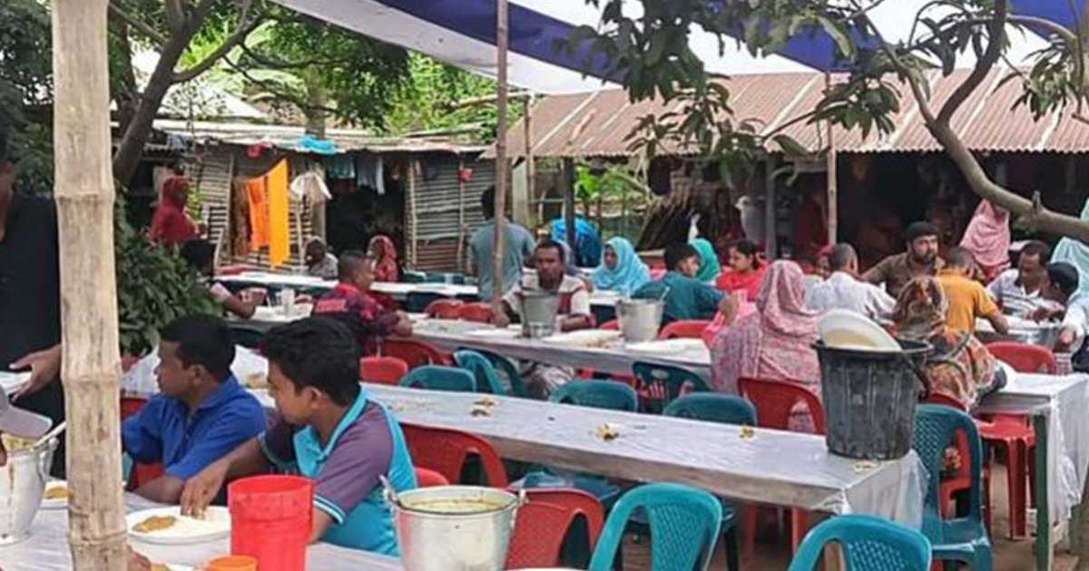 এ আয়োজনের বিষয়ে রুস্তম আলী বলেন, ‘এই অনুষ্ঠানকে কেউ চল্লিশা বলে। কেউ বলে ফয়তা। সমাজের মানুষকে নিয়ে এটা করতে হয়। বাপ-দাদার আমল থেকেই দেখে আসছি। আমিও মনের আবেগে করলাম। যে যার সামর্থ্য অনুযায়ী করে। আমি গরিব মানুষ, মাংস করতে পারিনি। মাছ দিয়ে মুড়িঘণ্ট আর ডাল করেছি। আশপাশের মানুষজন বলছিল, চার জনের মরার কারণে বাড়ি ভারী ভারী লাগছে। ছোট ছিলেপিলেরা ভয় পাচ্ছিল। অনুষ্ঠানটা করলাম যাতে ভয় ভাঙে। বাড়ি যেন পাতলা হয়। দুপুরে দোয়া হয়েছে। তারপর খাওয়াদাওয়া। প্রায় এক লাখ টাকা খরচ হলো। আত্মীয়-স্বজন ও সমাজের মিলিয়ে ১ হাজার ২০০ মানুষের আয়োজন করা হয়েছিল।’