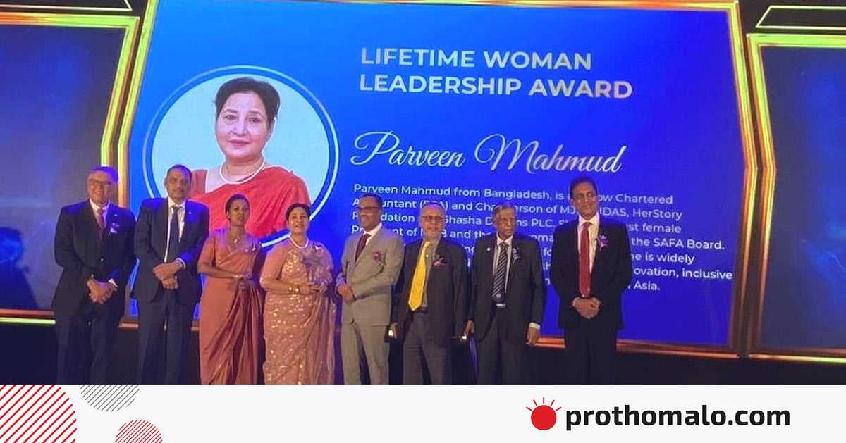 সাউথ এশিয়ান ফেডারেশন অব অ্যাকাউন্ট্যান্টসের (সাফা) ২০২৫ সালের লাইফটাইম উইমেন লিডারশিপ অ্যাওয়ার্ড পেয়েছেন বাংলাদেশের পারভীন মাহমুদ। গতকাল মঙ্গলবার শ্রীলঙ্কার সিটি অব ড্রিমস–এ আয়োজিত এক অনুষ্ঠানে তিনি এ পুরস্কার গ্রহণ করেন।