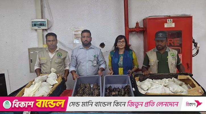হযরত শাহজালাল আন্তর্জাতিক বিমানবন্দরে অভিযান চালিয়ে বিপুল পরিমাণ কচ্ছপ জব্দ করেছে বন্যপ্রাণী অপরাধ দমন ইউনিট।