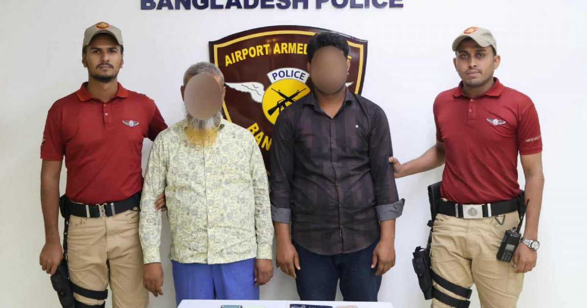 হজরত শাহজালাল আন্তর্জাতিক বিমানবন্দরে ৭৬১ গ্রাম স্বর্ণালঙ্কারসহ কবির হোসেন (৫৩), ও কুদ্দুছ (৪১) নামে দুইজনকে আটক করেছে এয়ারপোর্ট (১৩) আর্মড পুলিশ ব্যাটালিয়ন (এপিবিএন) । কবির হোসেন বেসামরিক বিমান চলাচল কর্তৃপক্ষের (বেবিচক) বোর্ডিং ব্রিজ অপারেটর।