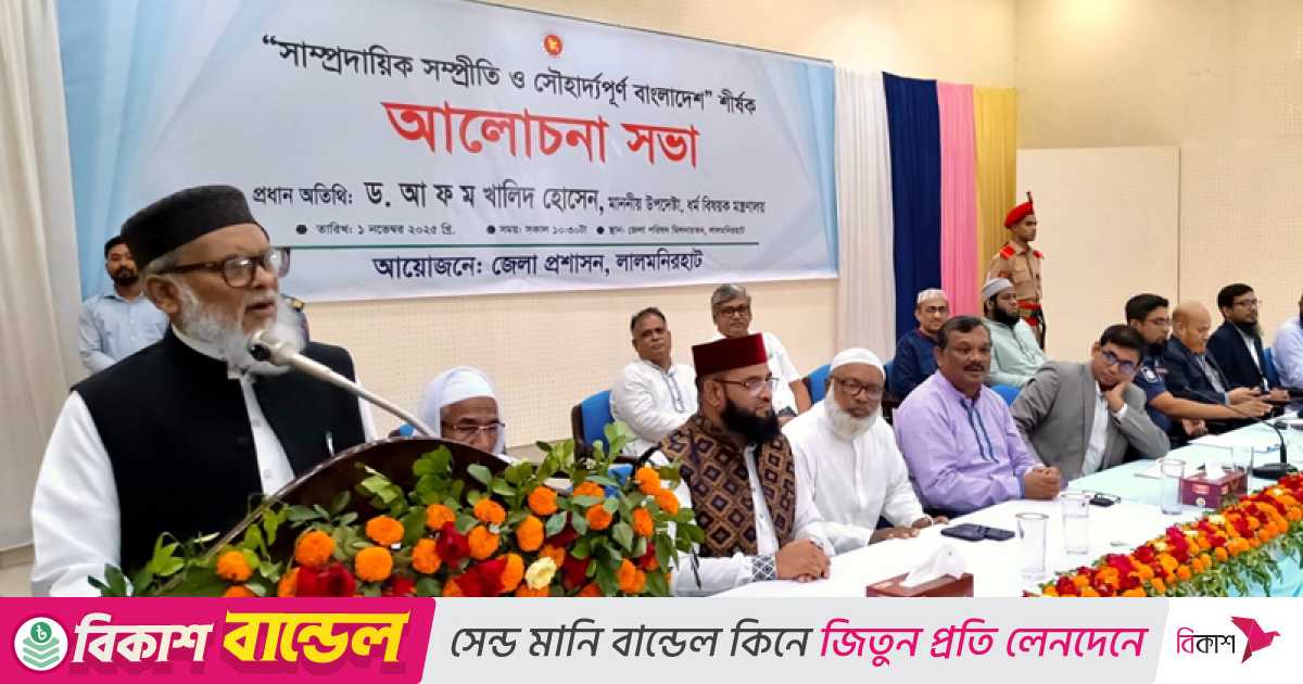 শনিবার (১ নভেম্বর) লালমনিরহাট জেলা পরিষদ অডিটোরিয়ামে জেলা প্রশাসন আয়োজিত ‘সাম্প্রদায়িক সম্প্রীতি ও সৌহার্ঘ্যপূর্ণ বাংলাদেশ’ শীর্ষক আলোচনা সভায় প্রধান অতিথি বক্তব্যে তিনি এসব কথা বলেন।