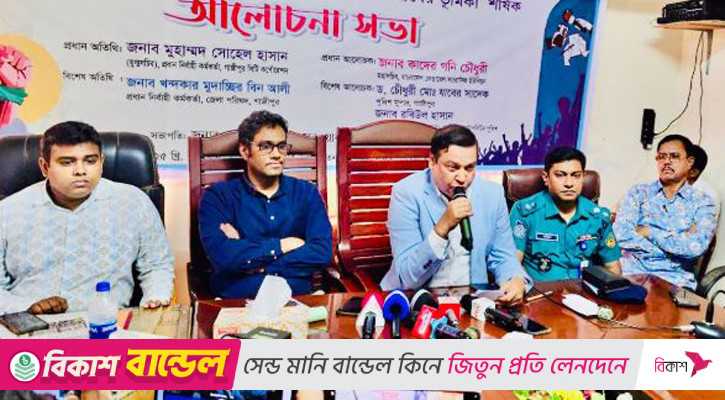 রোববার (২১ সেপ্টেম্বর) দুপুরে গাজীপুর প্রেসক্লাবের তত্ত্বাবধায়ক মণ্ডলীর দায়িত্ব গ্রহণ এবং ‘চব্বিশ পরবর্তী নতুন বাংলাদেশ বিনির্মাণে গণমাধ্যমের ভূমিকা’ শীর্ষক আলোচনা অনুষ্ঠানে তিনি এ বলেন।