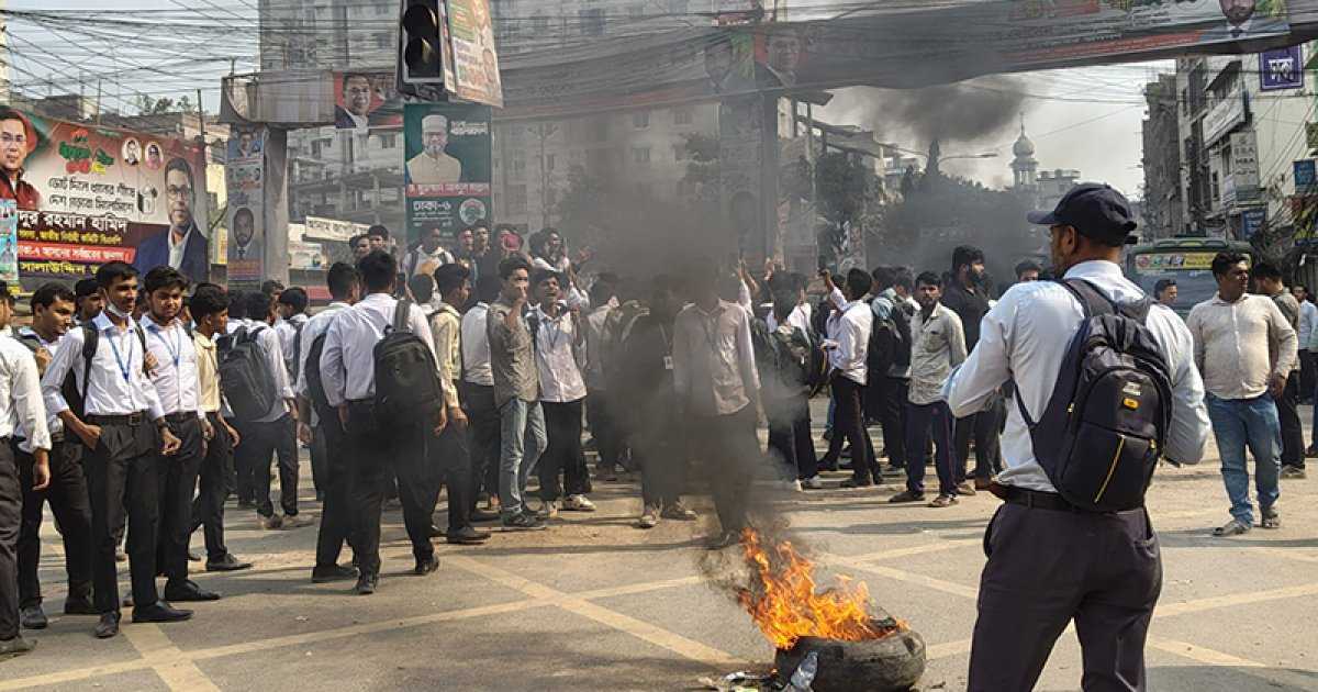 এদিকে একই দাবিতে পুরান ঢাকার রায় সাহেব মোড় অবরোধ করেছে কবি নজরুল কলেজ ও সোহরাওয়ার্দী কলেজের উচ্চমাধ্যমিকের শিক্ষার্থীরা। এ কারণে সকাল ১০টা থেকে পুরান ঢাকায় তীব্র যানজট দেখা দিয়েছে।