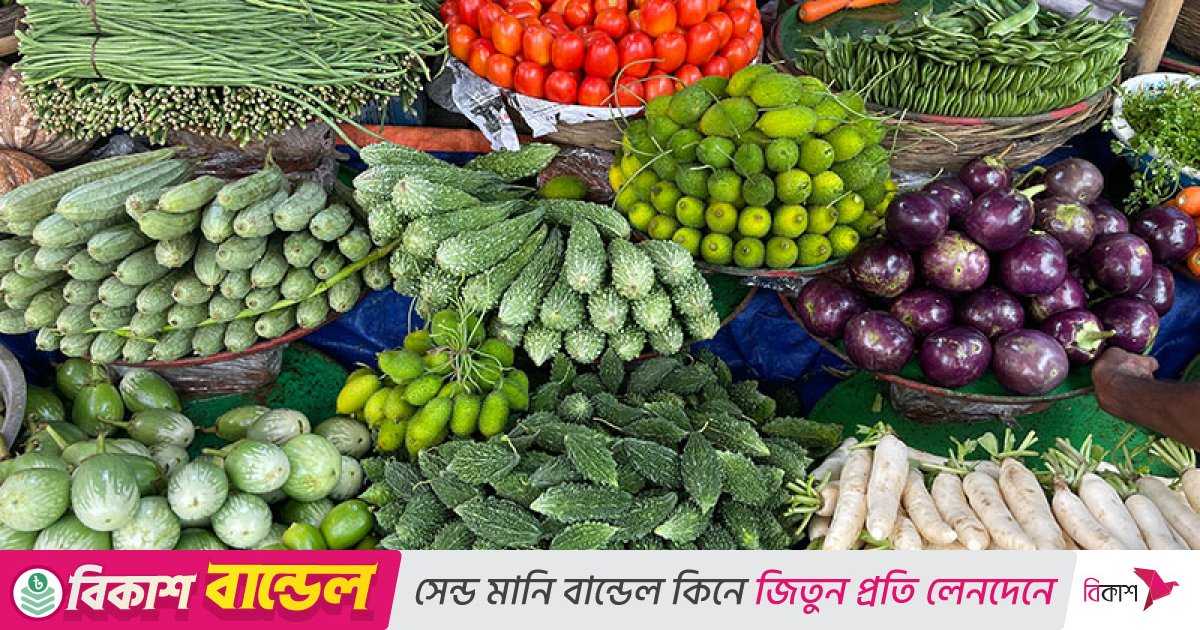 আজ বাজারে প্রতি কেজি ভারতীয় টমেটো ১২০ টাকা, দেশি গাজর ৮০ টাকা, চায়না গাজর ১২০ টাকা, লম্বা বেগুন ১০০ টাকা, সাদা গোল বেগুন ১২০ টাকা, কালো গোল বেগুন ১৬০ টাকা, শিম ২৪০ টাকা, দেশি শসা ৮০ টাকা, করলা ১০০ টাকা, কাঁকরোল ১০০ টাকা, ঢ্যাঁড়স ১০০ টাকা, পটল ৮০-১২০ টাকা, চিচিঙ্গা ৮০ টাকা, ধুন্দল ৮০ টাকা, ঝিঙা ১০০ টাকা, বরবটি ১০০ টাকা, কচুর লতি ৮০ টাকা, মূলা ১০০ টাকা, কচুরমুখী ১০০ টাকা, কাঁচা মরিচ ২০০ টাকা, ধনেপাতা (মান ভেদে) ৩০০ টাকা, পেঁপে ৪০ টাকা, মিষ্টি কুমড়া ৫০-৬০ টাকা কেজিতে বিক্রি হচ্ছে। আর মানভেদে প্রতিটি লাউ ৮০-১০০ টাকা, চাল কুমড়া ৭০-৮০ টাকা। প্রতি হালি কাঁচা কলা ৪০ টাকা। এছাড়া প্রতি হালি লেবু বিক্রি হচ্ছে ৩০-৪০ টাকায়।