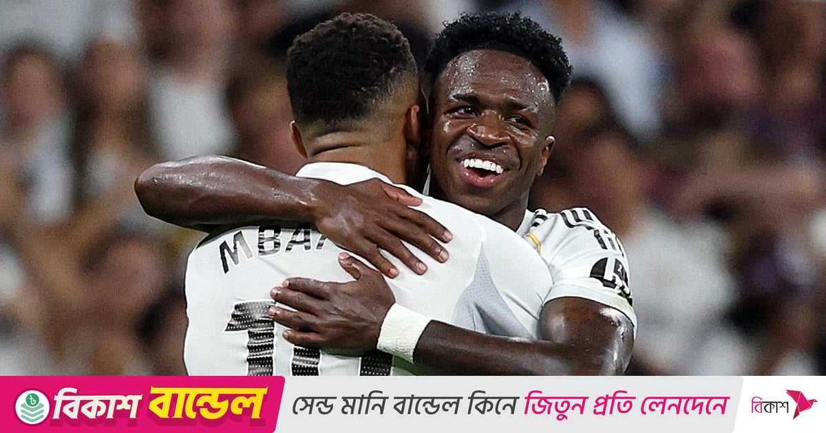 ম্যাচে রিয়ালের হয়ে জোড়া গোল করেছেন ভিনিসিয়ুস, অন্য গোলটি এমবাপ্পের। পাশাপাশি ভিনির একটি গোলে সহায়তাও করেছেন এমবাপ্পে। দলকে জেতানোর রাতে অবশ্য চোট নিয়ে মাঠ ছেড়ে দুশ্চিন্তাও বাড়িয়েছেন এই ফরাসি ফরোয়ার্ড।
