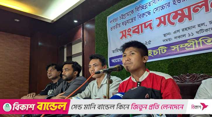 রোববার (৫ অক্টোবর) সকাল ১১টায় চট্টগ্রাম প্রেস ক্লাবের এস রহমান হলে পার্বত্য চট্টগ্রামকে বিচ্ছিন্নতাবাদীদের হাত থেকে রক্ষা করা এবং ভারতীয় ষড়যন্ত্রের বিরুদ্ধে সোচ্চার হওয়ার আহ্বান শীর্ষক সংবাদ সম্মেলনে সিএইচটি সম্প্রীতি জোটের সমন্বয়ক থোয়াইচিং মং শাক এসব কথা বলেন।