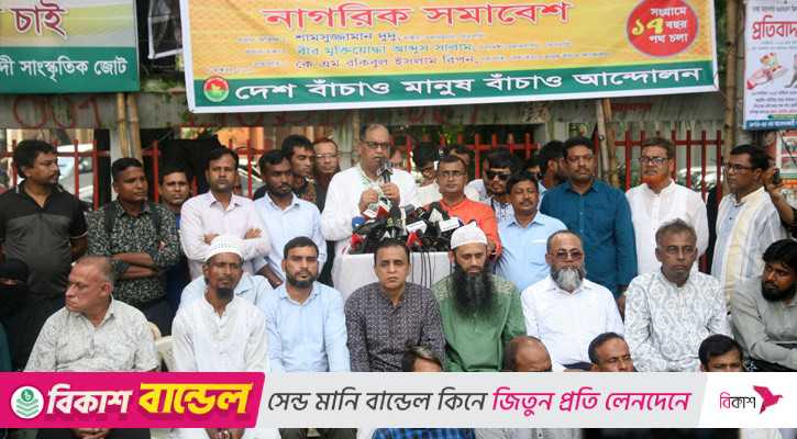 রোববার (০৫ অক্টোবর) জাতীয় প্রেসক্লাবের সামনে দেশ বাঁচাও মানুষ বাঁচাও আন্দোলনের উদ্যোগে দেশের স্বাধীনতা সর্বভৌমত্ব রক্ষা ও গণতন্ত্র প্রতিষ্ঠার দাবিতে এক নাগরিক সমাবেশে তিনি এসব কথা বলেন।