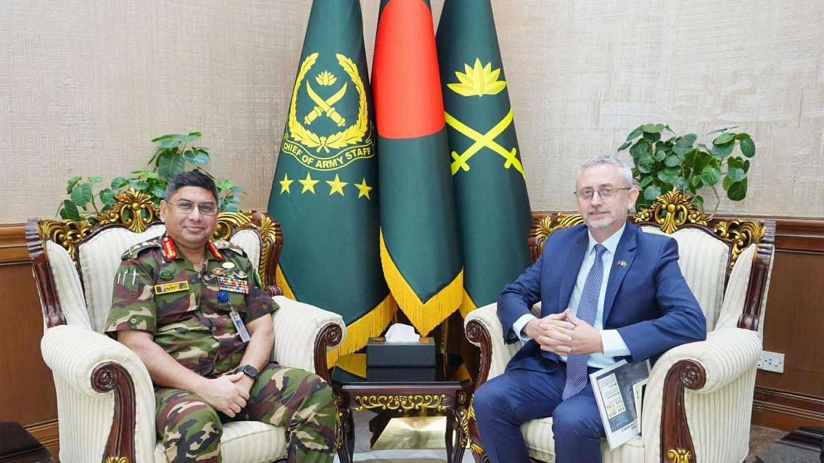 সেনাপ্রধান জেনারেল ওয়াকার-উজ-জামানের সঙ্গে সৌজন্য সাক্ষাৎ করেছে ইউরোপীয় ইউনিয়নের রাষ্ট্রদূত মাইকেল মিলারের নেতৃত্বে একটি প্রতিনিধিদল।