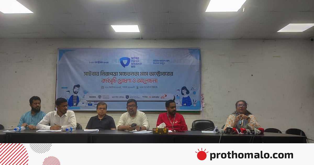 আজ শুক্রবার রাজধানীর ঢাকা রিপোর্টার্স ইউনিটিতে এক আলোচনায় এসব কথা বলা হয়। সাইবার নিরাপত্তা সচেতনতা মাস (অক্টোবর) উপলক্ষে এই আলোচনার আয়োজন করা হয়। অনুষ্ঠানে কর্মসূচিও ঘোষণা করা হয়। অনুষ্ঠানের আয়োজক সাইবার ক্রাইম অ্যাওয়ারনেস ফাউন্ডেশন (সিসিএফ)।