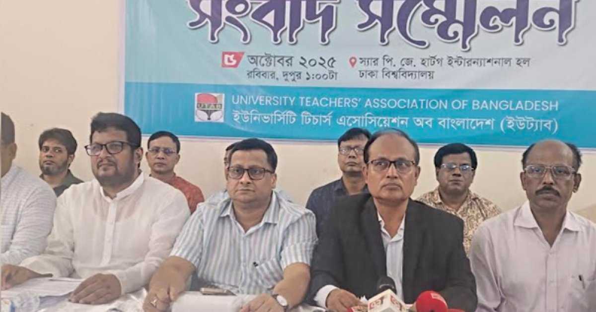 রবিবার (৫ অক্টোবর) বিশ্ব শিক্ষক দিবস উপলক্ষ্যে ঢাকা বিশ্ববিদ্যালয়ের (ঢাবি) স্যার পি জে হার্টগ ইন্টারন্যাশনাল হলে আয়োজিত এক সংবাদ সম্মেলনে সংগঠনের নেতারা এসব দাবি জানান।