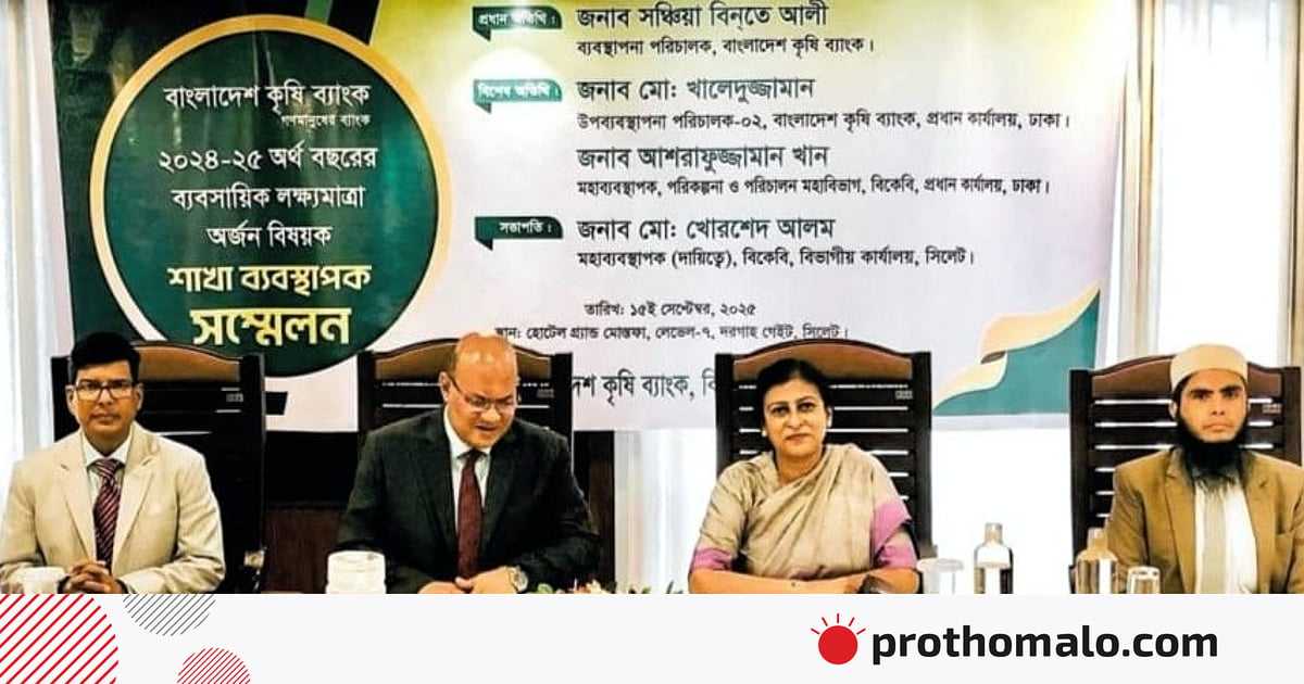 সম্মেলনে এমডি সঞ্চিয়া বিন্তে আলী বলেন, কৃষি খাতে এবং ক্ষুদ্র ও মাঝারি শিল্প–উদ্যোক্তাদের মধ্যে ঋণ বিতরণসহ আমানত সংগ্রহ, ঋণ আদায় ও বৈদেশিক রেমিট্যান্স প্রদানে কৃষি ব্যাংক ধারাবাহিক অগ্রগতি অর্জন করছে। চলতি বছরে ব্যবসায়িক লক্ষ্যমাত্রা অর্জনে ও লাভজনক পর্যায়ে উন্নীতকরণে সবার সম্মিলিত প্রচেষ্টার প্রয়োজন। সম্মেলনে সিলেট বিভাগের সব নির্বাহী ও শাখা ব্যবস্থাপক উপস্থিত ছিলেন।