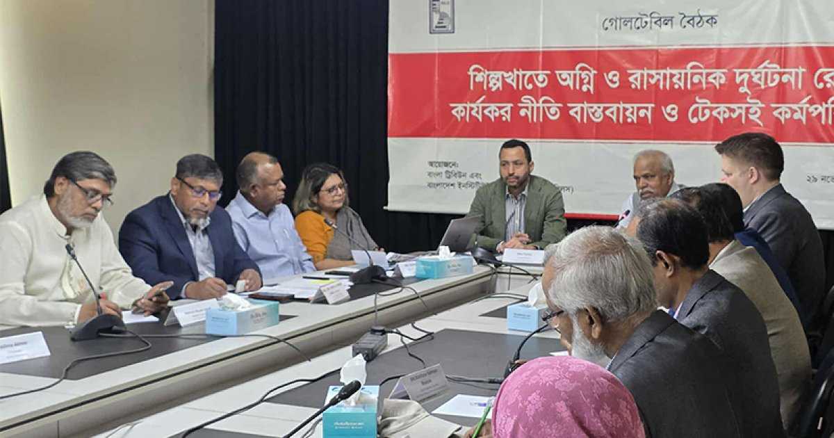 দেশের শীর্ষস্থানীয় অনলাইন নিউজপোর্টাল বাংলা ট্রিবিউন এবং বাংলাদেশ ইনস্টিটিউট অব লেবার স্টাডিজের (বিলস) আয়জনে শুরু হয়েছে ‘শিল্প খাতে অগ্নি ও রাসায়নিক দুর্ঘটনা রোধে কার্যকর নীতি বাস্তবায়ন ও টেকসই কর্মপরিবেশ’ শীর্ষক গোলটেবিল আলোচনা। শনিবার (২৯ নভেম্বর) সকালে রাজধানীর ডেইলি স্টার সেন্টারে এই আয়োজন শুরু হয়।