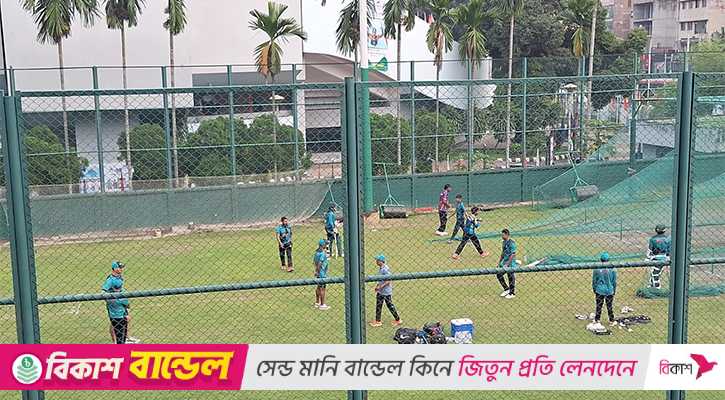 আজ সকাল থেকে মিরপুর শের-ই-বাংলা জাতীয় ক্রিকেট স্টেডিয়ামে দেখা গেছে বাংলাদেশ দলের প্রাণবন্ত অনুশীলন। তপ্ত রোদ আর গরম আবহাওয়া উপেক্ষা করে ঘাম ঝরাচ্ছেন সাকিব-মিরাজরা। শুরুতে হালকা অনুশীলন থাকলেও কিছুক্ষণ পর শিরু হয় ব্যাটিং-বোলিং অনুশীলন। ইনডোরে ক্রিকেটারদের বেশ মনোযোগী হয়ে অনুশীলন করতে দেখা গেল।