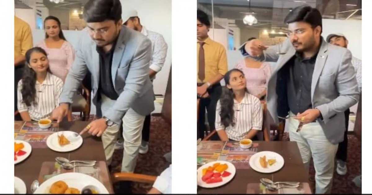 সামাজিক যোগাযোগমাধ্যমে ছড়িয়ে পড়ে ভিডিওতে দেখা যায়, একটি ডাইনিং টেবিলে ছুরি-কাঁটাচামচ ব্যবহার করে অত্যন্ত আনুষ্ঠানিক ভঙ্গিতে সমুচা খাওয়া শেখাচ্ছেন ওই প্রশিক্ষক। তিনি প্রথমে কাঁটাচামচ দিয়ে সমুচাটি আটকে সাবধানে কাটেন।