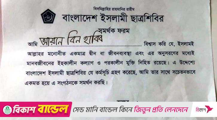 প্রগতি মাদরাসার অধ্যক্ষ মনিরুল ইসলামের কাছে একাধিকবার ফোন করা হলেও তিনি সাড়া দেননি। তবে মাদরাসার ভাইস প্রিন্সিপাল হেলাল আল মামুন জানান, তাদের শিক্ষা প্রতিষ্ঠানে ইসলামী ছাত্রশিবিরের একটি কালচারাল প্রোগ্রাম ছিল। সেই প্রোগ্রামে শিবিরের ছাত্রনেতারা শিক্ষার্থীদের দিয়ে এই ফরম পূরণ করান। অনুষ্ঠানে ছাত্রশিবিরের জুবায়ের হোসেন, রিজওয়ান হাসানসহ বেশ কয়েকজন নেতা উপস্থিত ছিলেন বলেও তিনি উল্লেখ করেন।