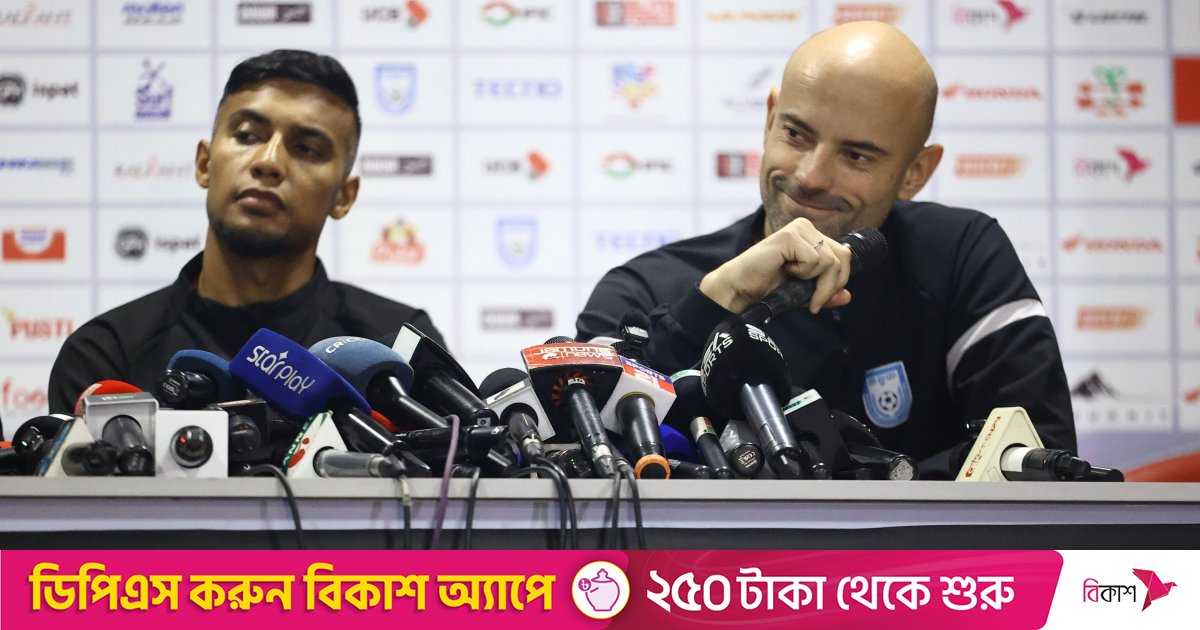 বুধবার (১২ নভেম্বর) রাতে জাতীয় স্টেডিয়ামে সংবাদ সম্মেলনে বাংলাদেশ কোচ হাভিয়ের কাবরেরা বলেছেন, 'আমরা কয়েকটি চূড়ান্ত অনুশীলন সেশন করেছি। আগামীকাল একটা প্রস্তুতি ম্যাচ আছে, যা আমাদের জন্য দারুণ এক পরীক্ষা হবে — যাতে আমরা ১৮ তারিখ ভারতের বিপক্ষে মূল ম্যাচের জন্য সম্পূর্ণভাবে প্রস্তুত হতে পারি।'