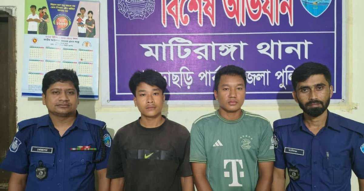 আটককৃত আসামিরা হলো– মাটিরাঙা উপজেলার চোংড়াগোপা গ্রামের অরুণ বিকাশ রোয়াজার ছেলে রনি বিকাশ ত্রিপুরা (৩২), উদয় কুমার ত্রিপুরার ছেলে ডেটল ত্রিপুরা (১৭)।