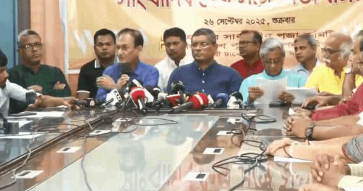 শুক্রবার (২৬ সেপ্টেম্বর) রাজধানীর আজিমপুরে ঢাকেশ্বরী জাতীয় মন্দিরে সংবাদ সম্মেলনে তারা এসব দাবি জানান। সংবাদ সম্মেলনে লিখিত বক্তব্য পাঠ করেন মহানগর সার্বজনীন পূজা কমিটির সভাপতি জয়ন্ত কুমার দেব।