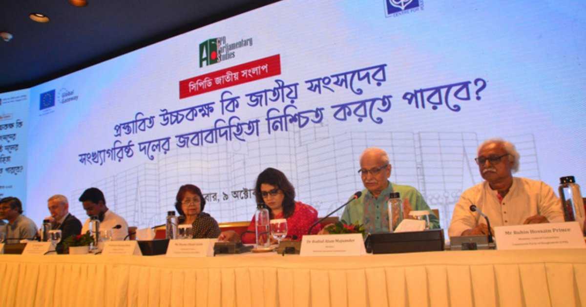 বৃহস্পতিবার (৯ অক্টোবর) রাজধানীর ইন্টারকন্টিনেন্টাল হোটেলে আয়োজিত ‘প্রস্তাবিত উচ্চকক্ষ কি জাতীয় সংসদের সংখ্যাগরিষ্ঠ দলের জবাবদিহি নিশ্চিত করতে পারবে?’ শীর্ষক এক জাতীয় সংলাপে এ মত দেয় সিপিডি। অনুষ্ঠানে অংশ নেন বিভিন্ন রাজনৈতিক দলের প্রতিনিধি, গবেষক ও নীতিনির্ধারকরা।