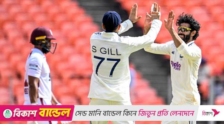 প্রথম দিন পিচে ছিল পেসারদের দাপট। মোহাম্মদ সিরাজ (৪/৪০ ও ৩/৩১) এবং জসপ্রিত বুমরাহ (৩/৪২) মিলে ওয়েস্ট ইন্ডিজকে প্রথম ইনিংসে ধসিয়ে দেন। দ্বিতীয় দিন ছিল ভারতীয় ব্যাটারদের সময়। লোকেশ রাহুল (১০০) নয় বছর পর ঘরে শতক পেলেন, উইকেটকিপার-ব্যাটার ধ্রুব জুরেল (১২৫) তুলে নিলেন তার ক্যারিয়ারের প্রথম টেস্ট শতক, আর রবীন্দ্র জাদেজা (১০৪ অপরাজিত) ব্যাট হাতে ফর্মের ধারাবাহিকতা রাখলেন।