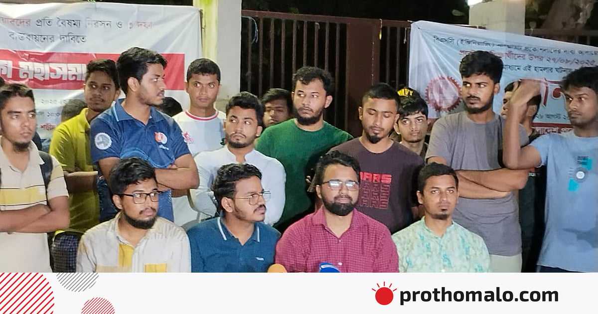 ওয়ালি উল্লাহ বলেন, ‘প্রকৌশল শিক্ষার্থীদের শাহবাগে আন্দোলনের পরিপ্রেক্ষিতে সরকার ২৭ আগস্ট আমাদের যে প্রতিশ্রুতি দিয়েছিল, সেখানে স্পষ্ট বলা হয়েছিল, এক মাসের মধ্যে কমিটি পূর্ণাঙ্গ রিপোর্ট জমা দেবে। কিন্তু সেই প্রতিশ্রুতি ভঙ্গ করে আবারও অকার্যকর একটি কমিটি গঠন করা হয়েছে।’