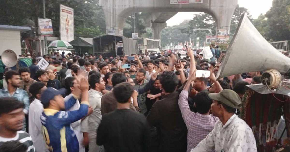 শনিবার সন্ধ্যা সোয়া ৫টায় সেখানকার সড়কের উভয় পাশে নেতাকর্মীরা অবস্থান করে সমাবেশ করার কারণে এমন পরিস্থিতি সৃষ্টি হয়েছে। এতে দুর্ভোগে পড়েছেন যাত্রী ও পথচারীরা।