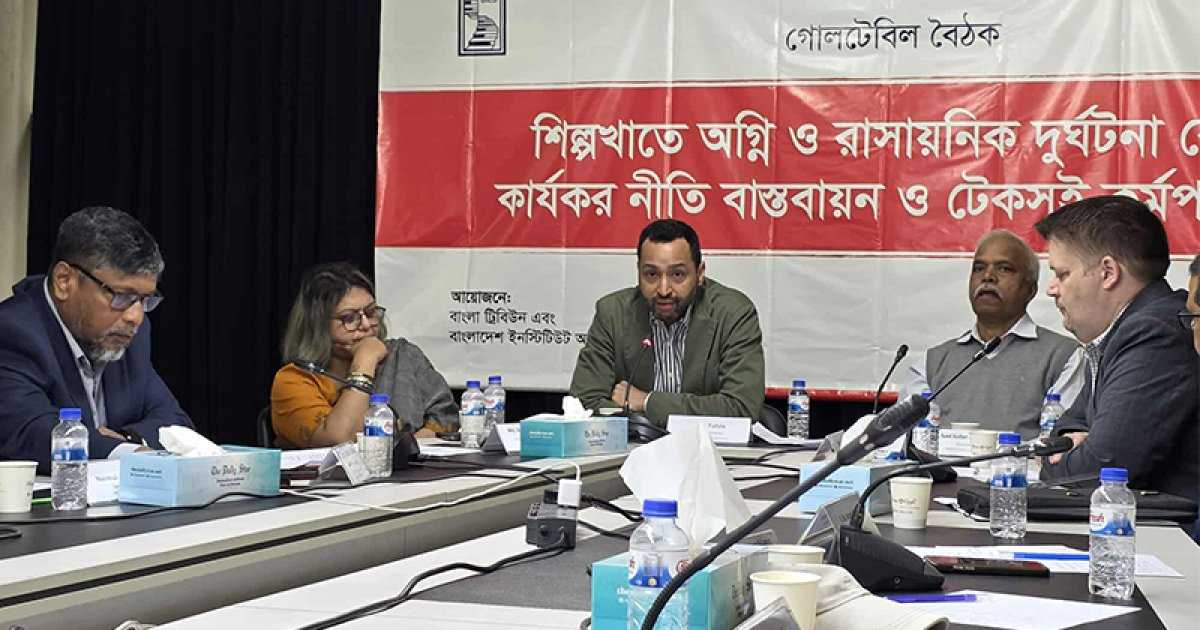 শনিবার (২৯ নভেম্বর) ডেইলি স্টার সেন্টারে দেশের শীর্ষস্থানীয় অনলাইন নিউজ পোর্টাল বাংলা ট্রিবিউন এবং বাংলাদেশ ইনস্টিটিউট অব লেবার স্টাডিজের (বিলস) যৌথ উদ্যোগে আয়োজিত ‘শিল্প খাতে অগ্নি ও রাসায়নিক দুর্ঘটনা রোধে কার্যকর নীতি বাস্তবায়ন ও টেকসই কর্মপরিবেশ’ শীর্ষক গোলটেবিল বৈঠকে তিনি এসব বলেন।