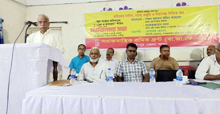সমাজতান্ত্রিক শ্রমিক ফ্রন্টের জেলা কমিটির ভারপ্রাপ্ত সভাপতি মোশারফ হোসেনের সভাপতিত্বে বক্তব্য রাখেন শ্রম সংস্কার কমিশনের সদস্য শ্রমিক ফ্রন্টের কেন্দ্রীয় সভাপতি রাজেকুজ্জামান রতন, জেলা বাসদের আহ্বায়ক অ্যাডভোকেট আবদুল কাইয়ুম, জাতীয় শ্রমিক ফেডারেশনের কেন্দ্রীয় সহসভাপতি আ স ম জাকারিয়া, জাতীয়তাবাদী শ্রমিক দলের গাজীপুর মহানরীর যুগ্ম আহ্বায়ক বারেক সরকার, শ্রমিক ফ্রন্টের জেলার সাধারণ সম্পাদক রাহাত আহমেদ প্রমুখ।