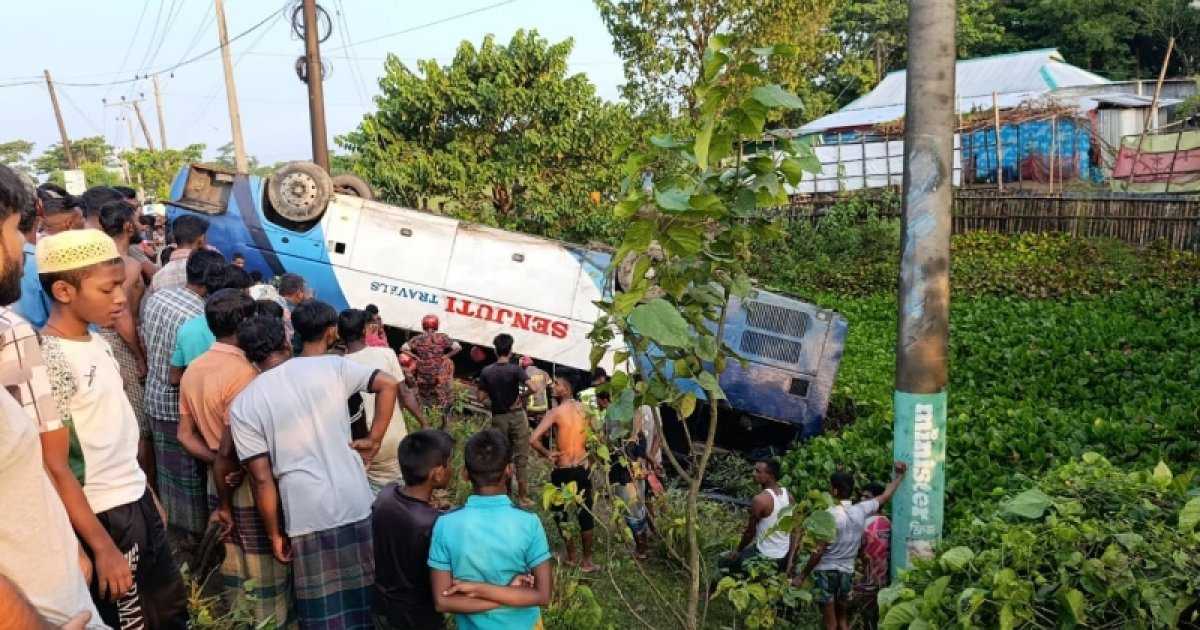 জানা গেছে, ঢাকা থেকে সুনামগঞ্জ আসার পথে পাগলাবাজার এলাকায় নিয়ন্ত্রণ হারিয়ে সেজুতি ট্রাভেল এসি বাস উল্টে খাদে পড়ে যায়। এ সময় ঘটনা স্থলে ২ জন নিহত হয় ও ১০ যাত্রী আহত হম। তাৎক্ষনিক ভাবে নিহতদের নাম পরিচয় জানতে পারেনি পুলিশ।