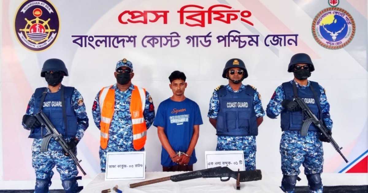 অভিযান চলাকালে কোস্টগার্ডের উপস্থিতি টের পেয়ে ওই ব্যক্তি পালানোর চেষ্টা করে। পরে আভিযানিক দল ধাওয়া করে একটি একনলা বন্দুক ও তিন রাউন্ড তাজা কার্তুজসহ তাকে আটক করে।