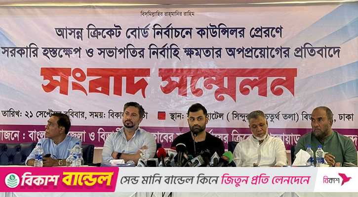 বিসিবি নির্বাচনে সরকারি হস্তক্ষেপ ও সভাপতির ক্ষমতা প্রয়োগের প্রতিবাদে বৃহস্পতিবার সংবাদ সম্মেলনের আয়োজন করে জেলা ও বিভাগীয় ক্রীড়া সংস্থা। সেখানে উপস্থিত ছিলেন সাবেক অধিনায়ক তামিম ইকবালও।