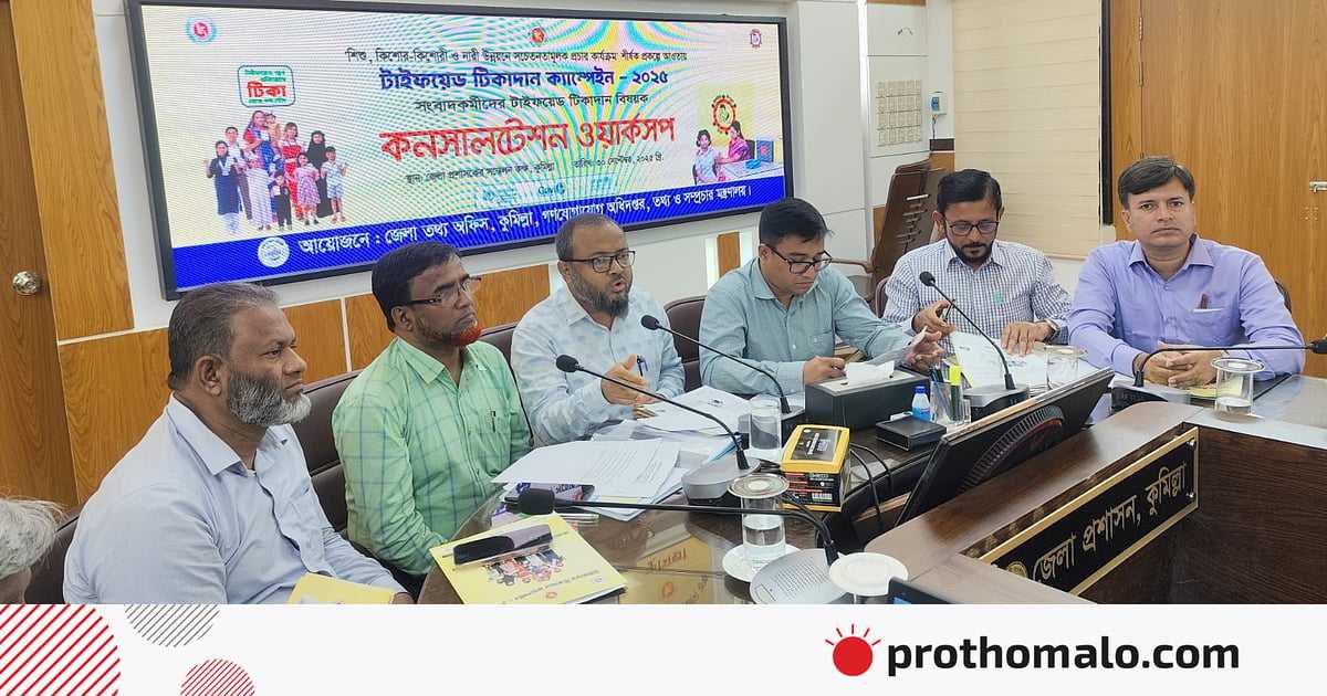 টাইফয়েড টিকাদান ক্যাম্পেইন-২০২৫ উপলক্ষে কুমিল্লায় গণমাধ্যমকর্মীদের নিয়ে কর্মশালা অনুষ্ঠিত হয়েছে। আগামী ১২ অক্টোবর থেকে শুরু হতে যাওয়া এ কার্যক্রমে ৯ মাস থেকে ১৫ বছর বয়সী শিশু-কিশোরদের এক ডোজ টাইফয়েডের টিকা বিনা মূল্যে দেওয়া হবে।