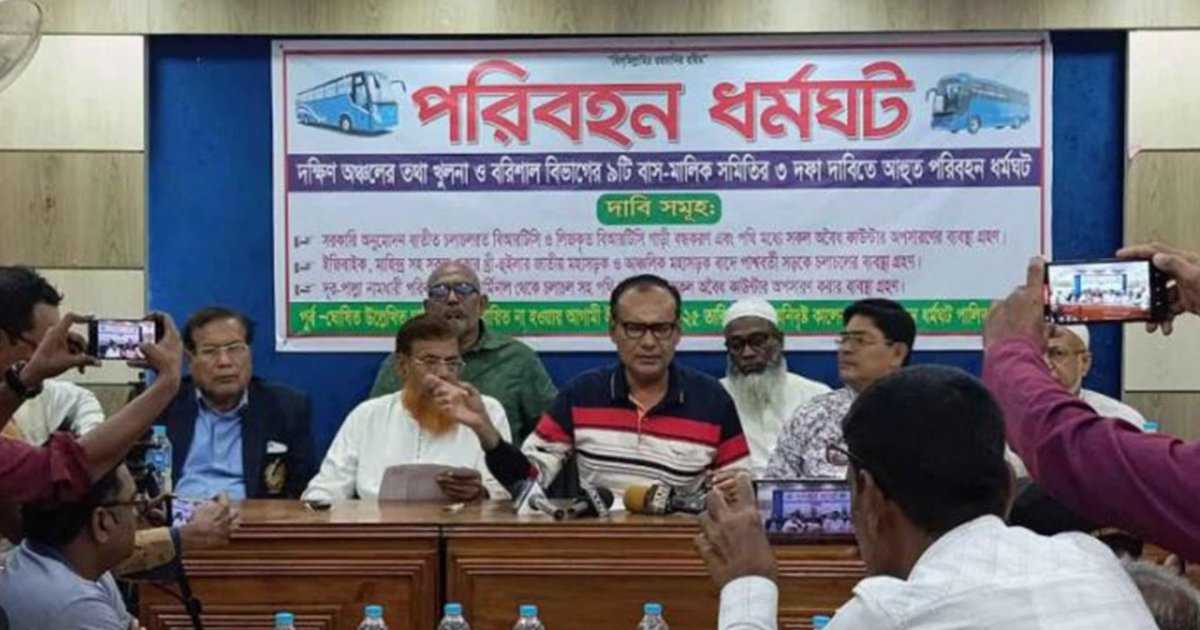 রবিবার (১৬ নভেম্বর) বাগেরহাট প্রেসক্লাবে আয়োজিত এক সংবাদ সম্মেলনে খুলনা ও বরিশাল বিভাগের ৯টি পরিবহন মালিক সমিতির নেতারা এ ঘোষণা দেন।
