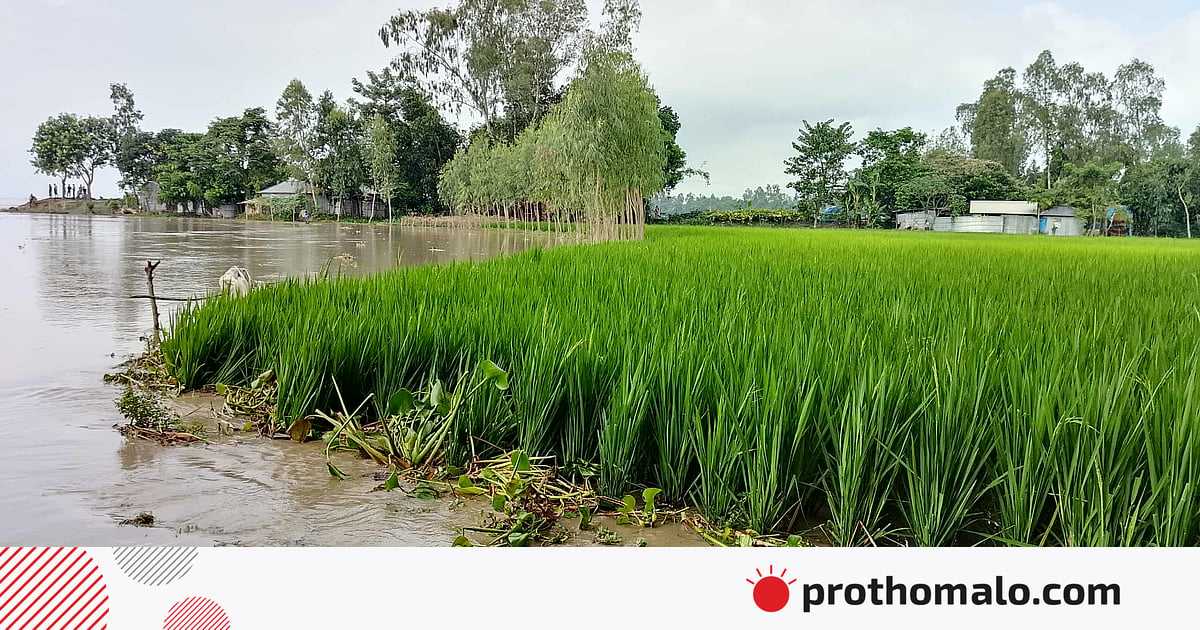 ধরলা, ব্রহ্মপুত্র ও গঙ্গাধর নদের পানি বেড়ে চরাঞ্চল প্লাবিত হওয়ায় আমন ধান ও শীতকালীন সবজির খেত পানিতে তলিয়ে গেছে।