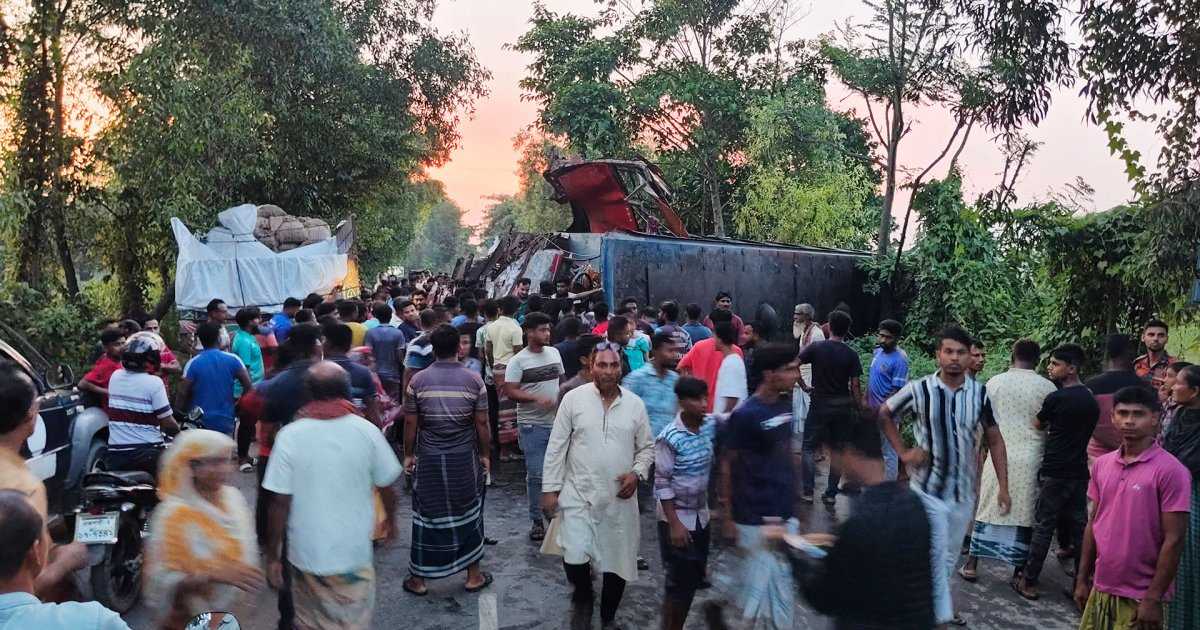 শনিবার (২৭ সেপ্টেম্বর) সন্ধ্যা ৬টার দিকে পবা উপজেলার নওহাটা পৌর এলাকার রাজশাহী পল্লী বিদ্যুৎ অফিসের সামনে এ দুর্ঘটনা ঘটে। তবে ঘটনার পর ট্রাকের চালক ও সহকারী পালিয়ে গেছেন। বাসটি উল্টে দুমড়েমুচড়ে গেছে। এটি নওগাঁ থেকে রাজশাহীতে যাচ্ছিল। ট্রাকটি নওগাঁর দিকে যাচ্ছিল। ঘটনার পর ওই সড়ক দিয়ে যান চলাচল বন্ধ হয়ে যায়। পরে ফায়ার সার্ভিস গিয়ে উদ্ধার করলে যান চলাচল স্বাভাবিক হয়।