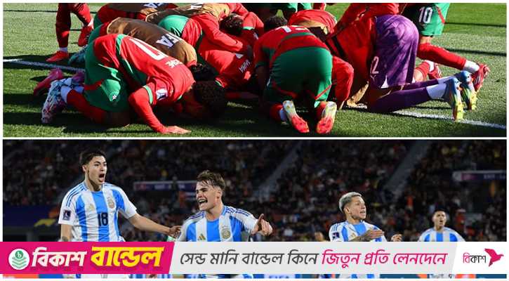 ফিফা অনূর্ধ্ব–২০ বিশ্বকাপের ফাইনালে মুখোমুখি হচ্ছে আর্জেন্টিনা ও মরক্কো। গতকাল রাতে সেমিফাইনালের দুই ম্যাচে নাটকীয়ভাবে জয় তুলে নেয় দুই দল।