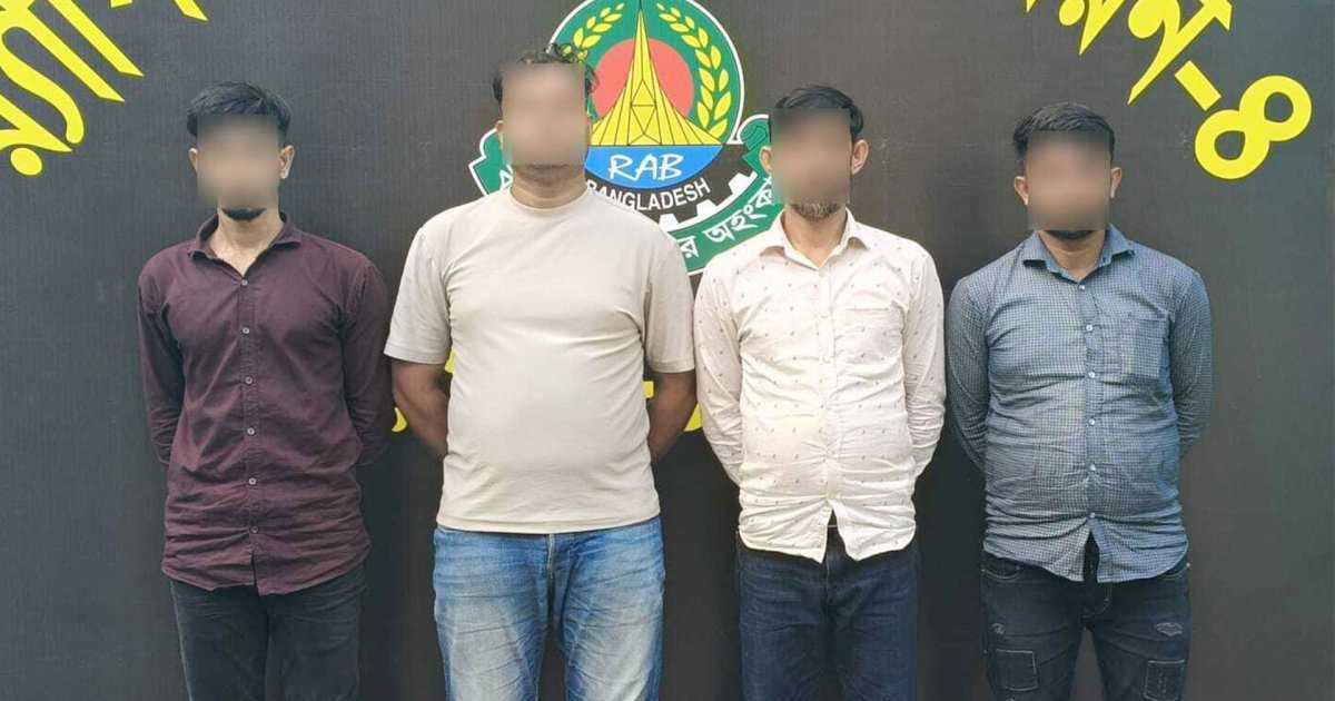 গ্রেফতারকৃতরা হলেন—আব্বাস মোল্লা (৩৬), জাহিদুল ইসলাম ওরফে বাবু (৩১), মিনার সরদার (৩০) ও মোহাম্মদ রিপন শেখ (২৮)।